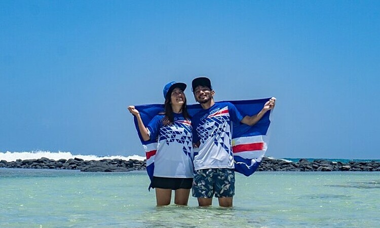 Rikia, 29 tuổi, cho biết: “Chúng tôi nghĩ rằng sống ở Cape Verde là lựa chọn an toàn nhất. Lúc đầu, chúng tôi may mắn được ở đây. Số ca nhiễm trùng ở Nhật Bản đang tăng lên. Điều này cũng đúng ở châu Âu. Tôi nghĩ tôi Vợ chồng tôi thật may mắn khi được đến một nơi yên bình như vậy “. –Rikiya (phải) và Ayumi Kataoka (trái) trong trang phục của đội Olympic Cape Verde chụp ảnh tập thể. Quốc kỳ của đất nước trên bờ biển Santa Maria, một thị trấn nhỏ ở phía nam Đảo Sal, vào ngày 15 tháng 8. Ảnh: Agence France-Presse.-Nhưng họ đã bị chặn kể từ khi sân bay Cape Verde đóng cửa. Rikiya điều hành một công ty cho thuê và một nhiếp ảnh gia ở Tokyo, và bắt đầu sản xuất video và ảnh cho các nhà hàng và khu nghỉ dưỡng địa phương để đổi lấy thức ăn và chỗ ở.