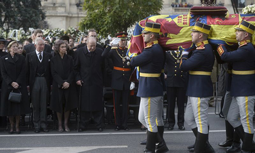 Từ trái sang phải: Hoàng tử Lorenz đang đứng cạnh vợ, Công chúa Astrid. Nữ hoàng Muna Hussein của Jordan, Nữ hoàng Anne Marie của Hy Lạp, Hoàng tử Charles của Anh, Nữ hoàng Sofia và chồng, Thái tử Juan Carlos I của Tây Ban Nha, Đại công tước Henry của Luxembourg, Nữ hoàng Sylvia Lễ đăng quang với Vua Carl XVI Gustaf của Thụy Điển. Đám tang .