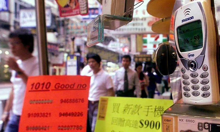 Tại Hong Kong, Trung Quốc, một cửa hàng bán mô phỏng điện thoại số đẹp. Ảnh: AFP – Người dùng điện thoại Trung Quốc, đặc biệt là các công ty muốn thu hút khách hàng và gây ấn tượng với đối tác của họ, thường chi rất nhiều tiền để sở hữu một chiếc điện thoại tương tự-kỹ thuật số trông rất may mắn. Nó có cách phát âm giống như “thịnh vượng” hoặc “tài sản”.