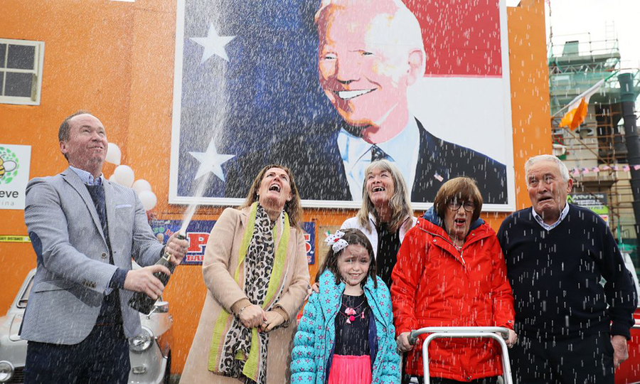 Ngày 7/11, sau khi CNN xướng tên Biden trở thành ông chủ tiếp theo của Nhà Trắng, người dân Ballina đã đổ ra đường để ăn mừng thành công của những người họ hàng xa.